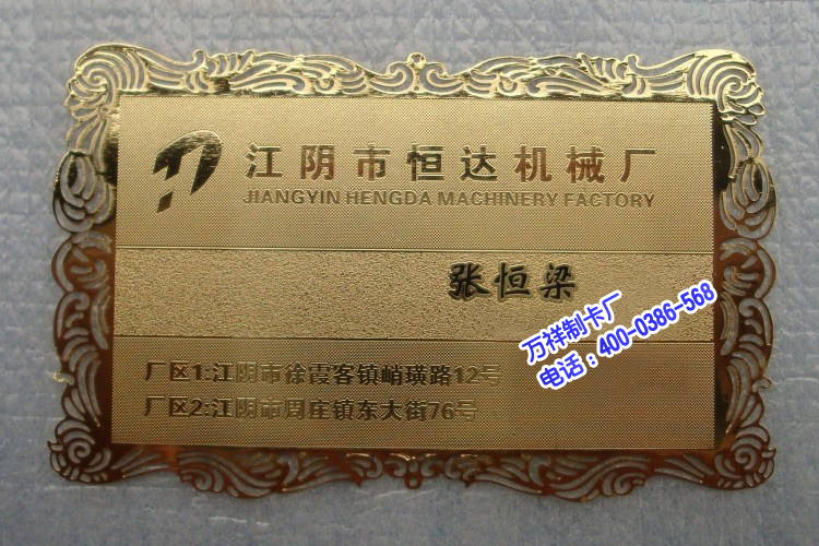 产品概述:金属卡 是薄铜片通过电解液蚀刻后电镀而成,部分金属卡还多了一道着色或烫印工序。金属卡的原料以铜为主,部分高档金属卡的卡面镀有一定百分比的金或银,因此,金属卡在初期被