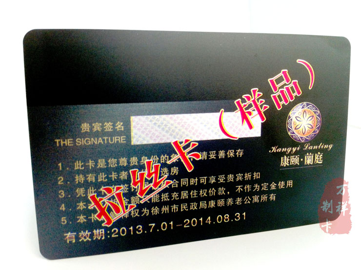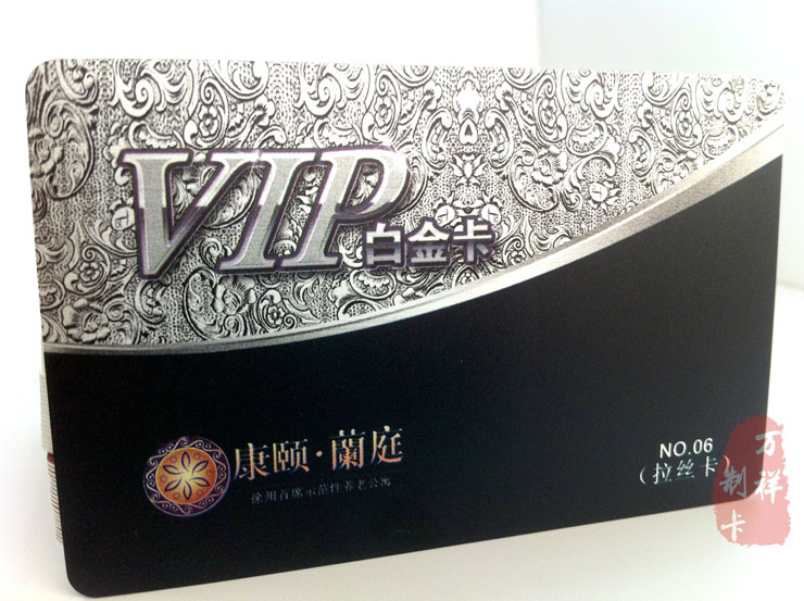 产品概述:拉丝卡 - 介绍 拉丝卡是指用一种PVC拉丝材料印刷之后从不同的角度看有拉丝效果同时也可以在拉丝材料上表面烫镭射银或镭射金。当掏出卡给别人看时也同时可以提升企业的形象,给人